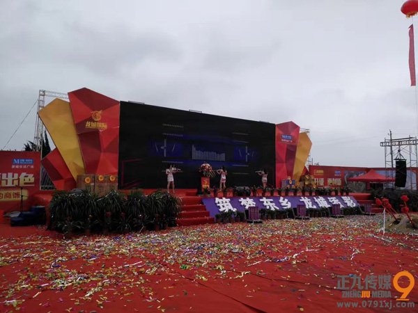 江西東鄉(xiāng)龍城國際·紅星美凱龍家具城簽約儀式主舞臺區(qū)域
