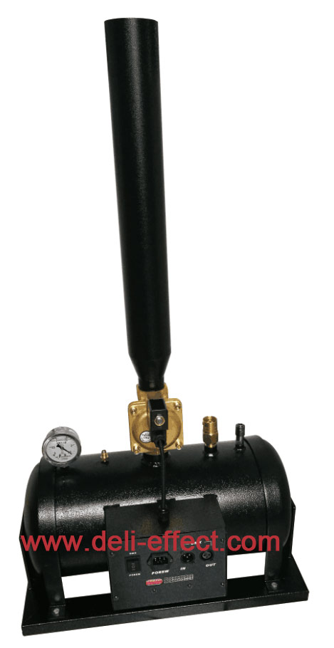 DC-07-2 大型禮炮機是專門為大型演出設計的,儲存氣量更多,噴射距離更遠,本產品可用空氣壓縮機或二氧化碳氣體加壓,機器采用電源直通控制或DMX512信號控制,操作簡單方便,是大型演出必不可少的特效器材。